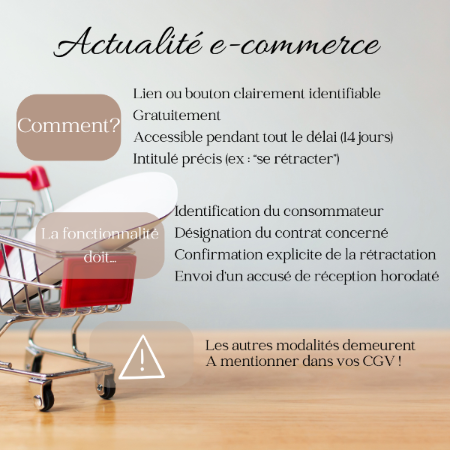➡️ Une nouvelle fonctionnalité devra figurer sur le site / plateforme / application : celle permettant l'exercice du droit de rétractation par le client !